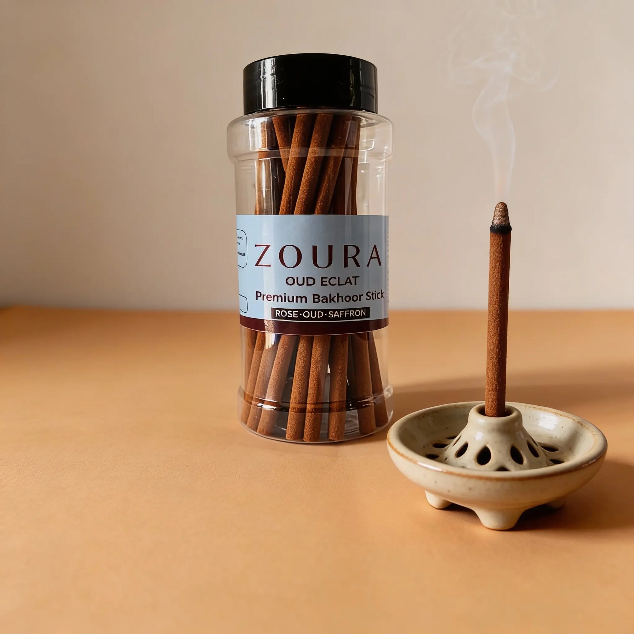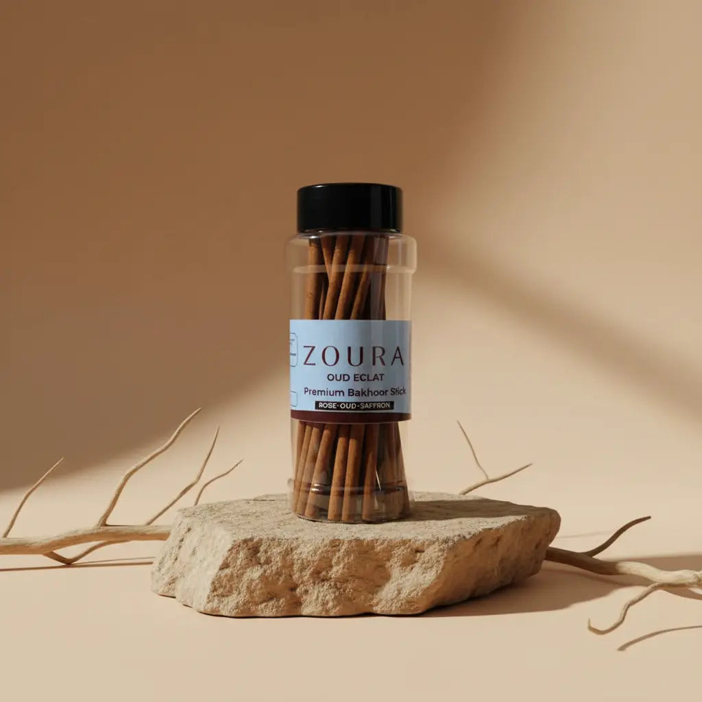 ZOURA Oud Eclat Bakhoor Sticks create an inviting atmosphere with floral warmth, oud depth, and a lingering saffron touch — perfect for moments of peace, reflection, and elevated living.